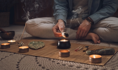 Räuchern: Man verbrennt verschiedene Kräuter und Harze, um negative Energien zu vertreiben und den Raum zu reinigen.